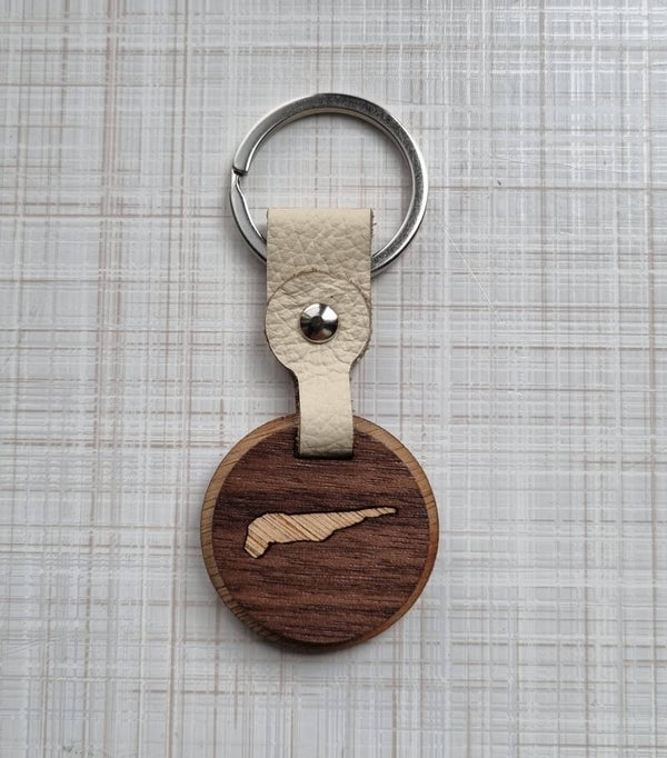 Deze sleutelhanger is voorzien van een klein stukje leer met een sleutelring. Hij is in doosnede 3.5cm. Ook is hij voorzien van twee lagen lak waardoor hij geschikt is voor alle weersomstandigheden.